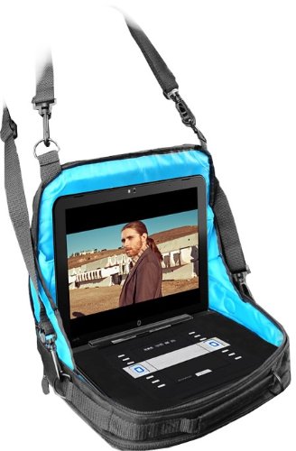 This well-designed, thickly padded and versatile DVD player case will provide you with protection and convenience for your DVD player and accessories.There are custom compartments for AC adapters, cables, earbuds, spare batteries and even a zippered pocket that's mounted inside of the case. It also has a shoulder strap and durable handle for transportation.
